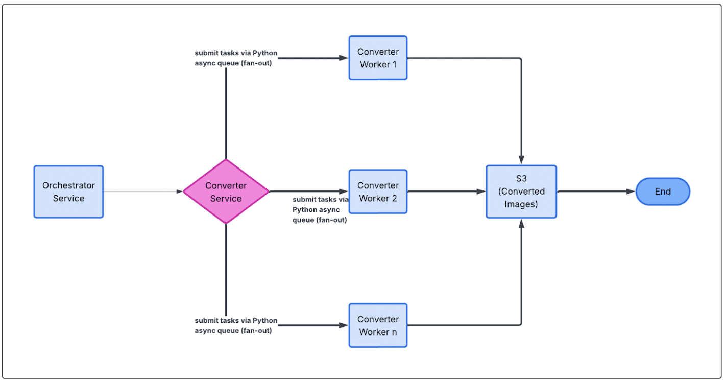 By pushing conversion work onto a queue and letting multiple workers pull from it concurrently, we could parallelize image generation in a controlled way, scaling throughput without turning the pipeline into a distributed systems exercise. This gave us much better latency characteristics while keeping the codebase simple and the control flow easy to reason about.